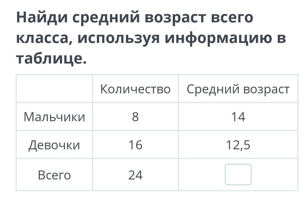4) 312 : 24 = 13 лет - средний возраст всего класса.