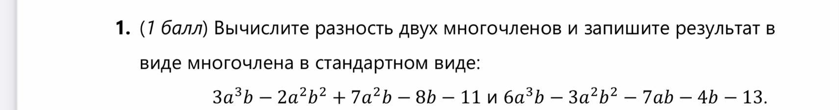 1) Записать многочлены в одну строку, второй многочлен и последующие в скобках, между ними знак + или -.