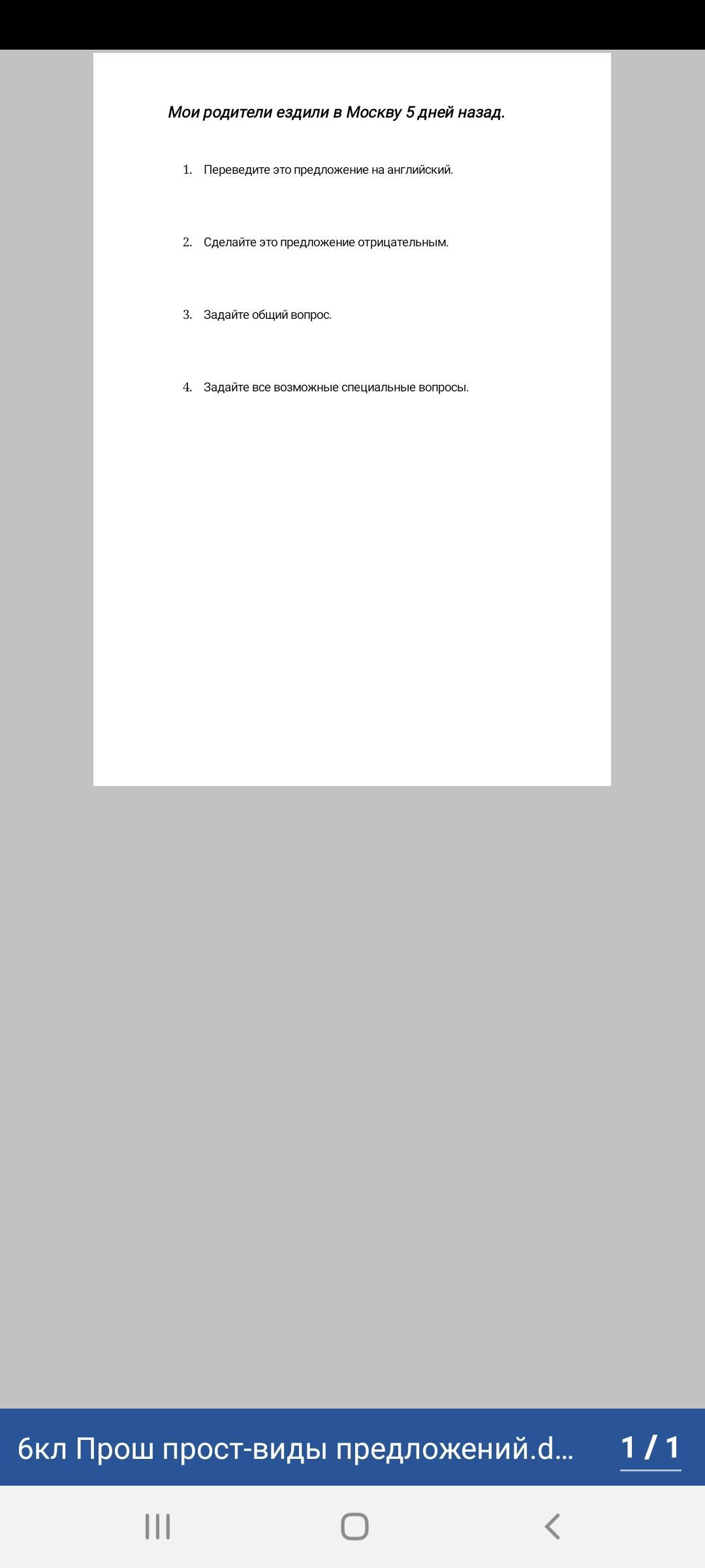 1. My parents went to Moscow five days ago.
