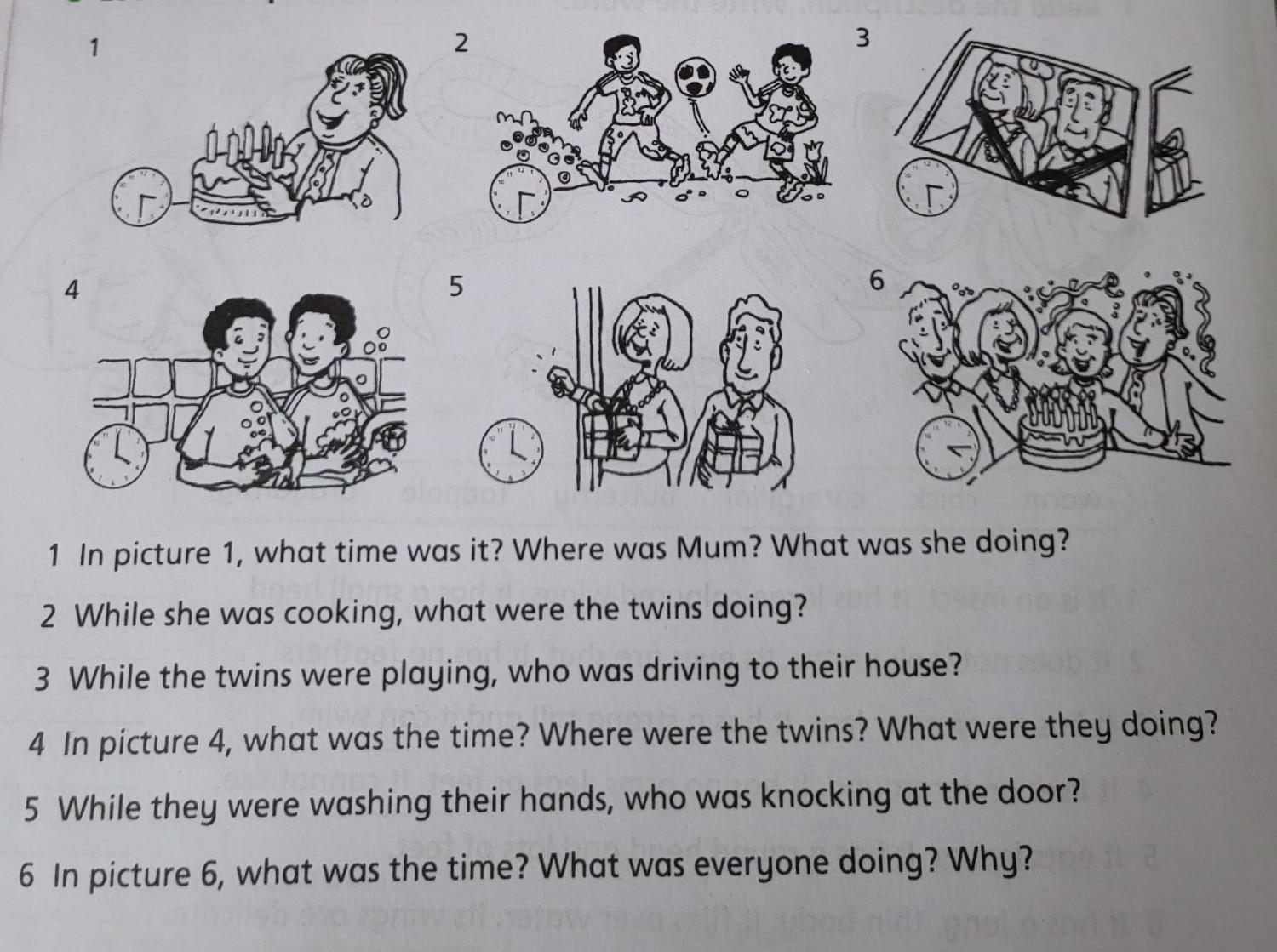 In picture 6, someone's birthday. Everyone stood around the cake to blow out the candles.