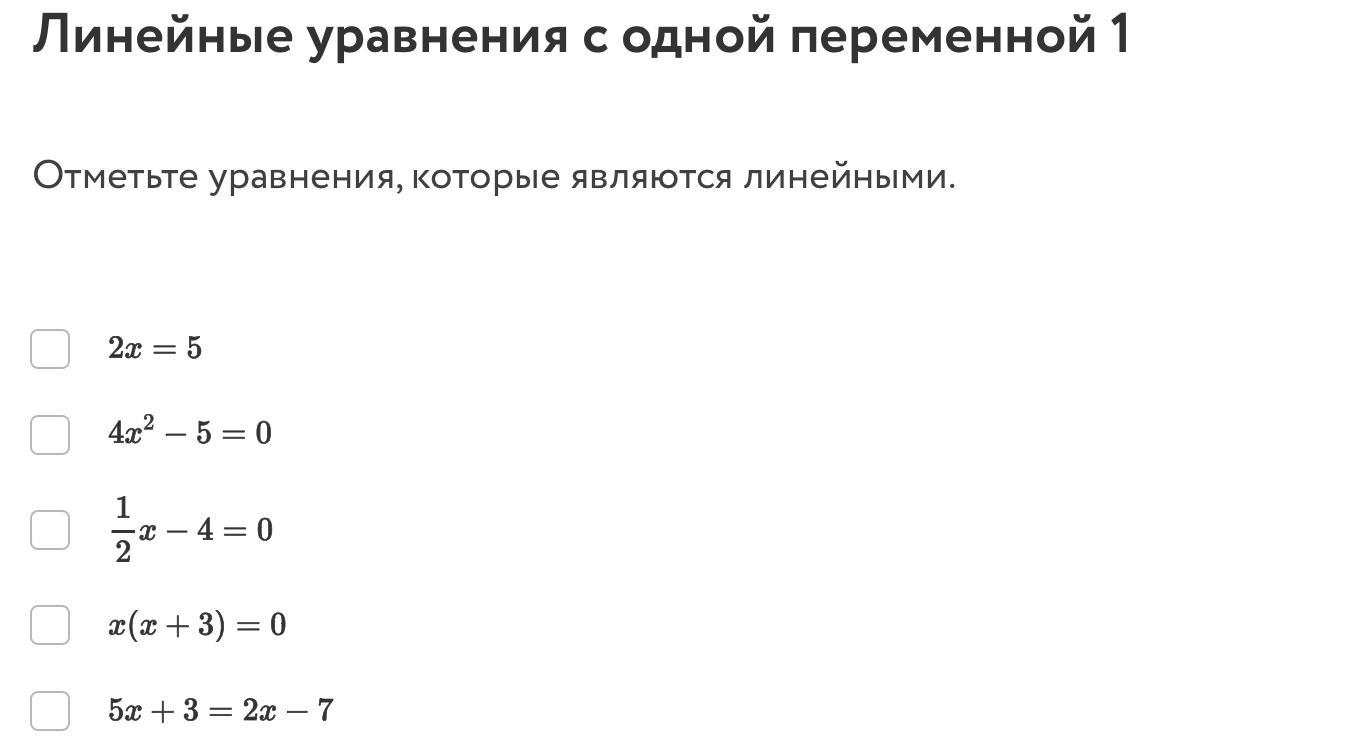 Отметьте уравнения, которые являются линейными (на скрине).