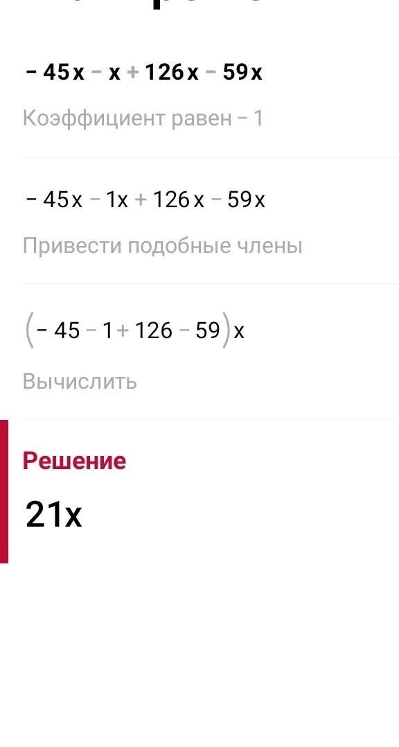 Приведи подобные слагаемые: -45x-x+126x-59x . Ответ (записывай без промежутков, переменную вводи с латинской раскладки!):