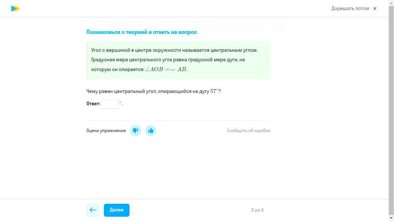 Угол с вершиной в центре окружности называется центральным углом......................................