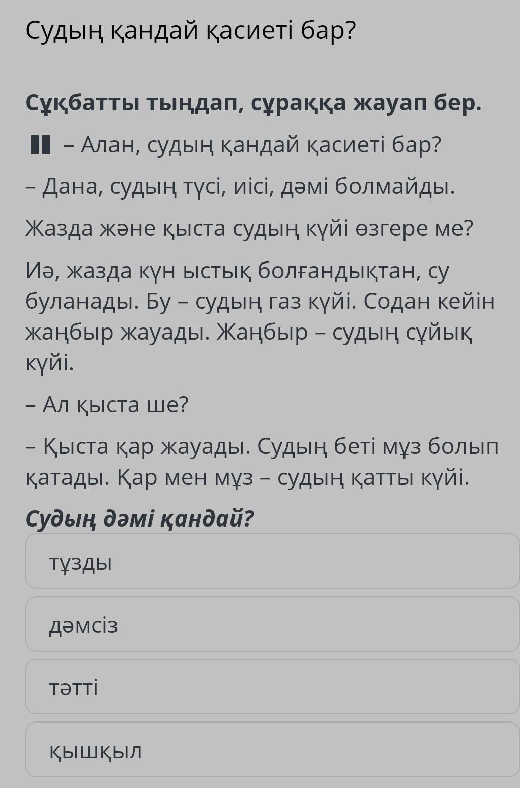 Өйткені біріншіден ол мөлдір, екіншіден ол дәмсіз.
