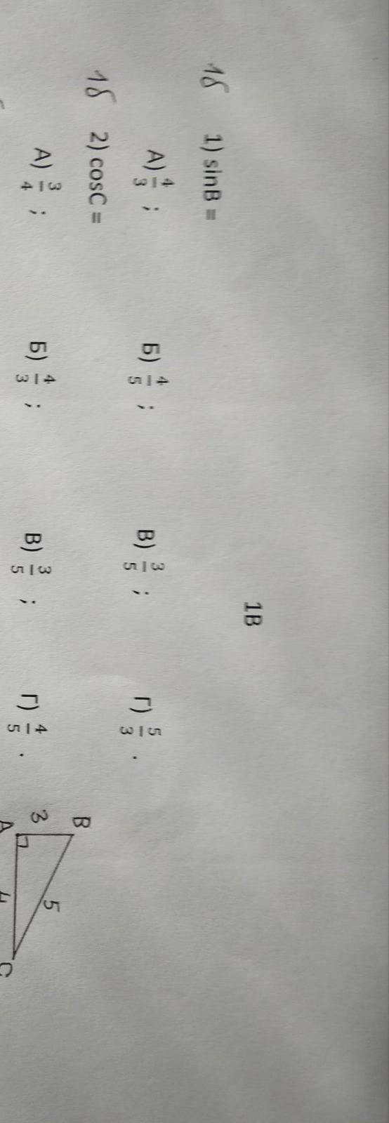 1 ) sinB = 4/5 . В - дь : Б ) 4/5 .