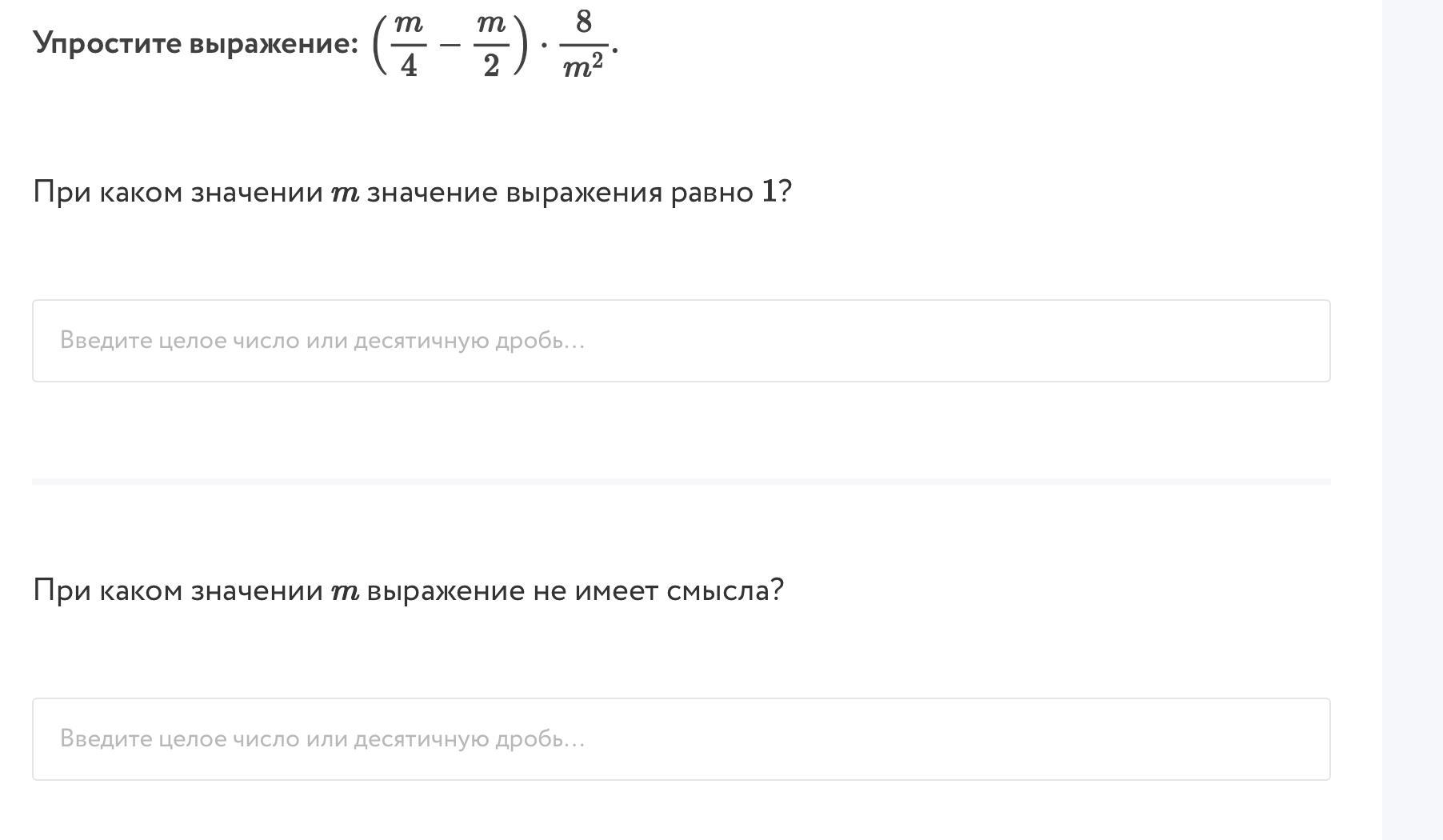 !При каком значении m значение выражения равно 1?(все задание на скрине)