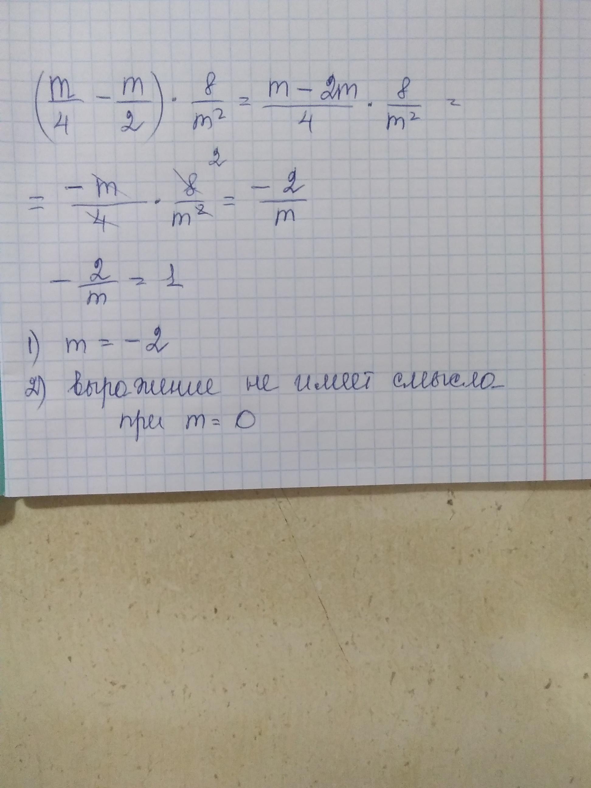 (m/4 - m/2) × 8/m² = (m-2m)/4 × 8/m² = (-m/4) × 8/m² = -2/m