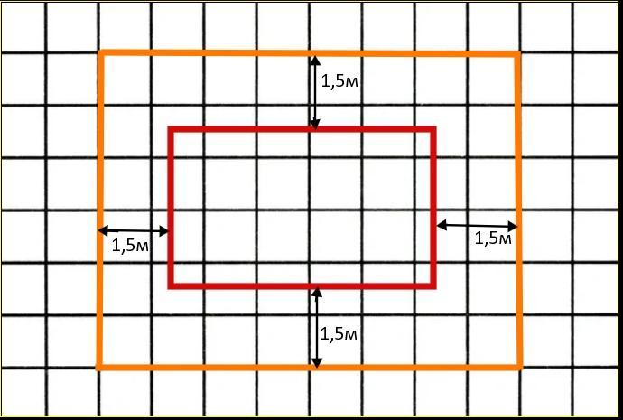 И эти 3 метра надо распределить поровну по обе стороны по длине и ширине.