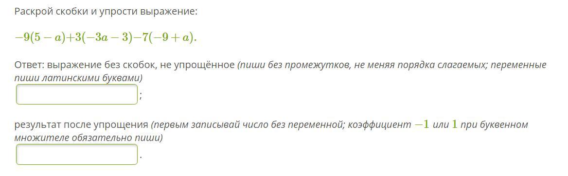 Выражение без скобок: -45+9а-9а-9+63-7а