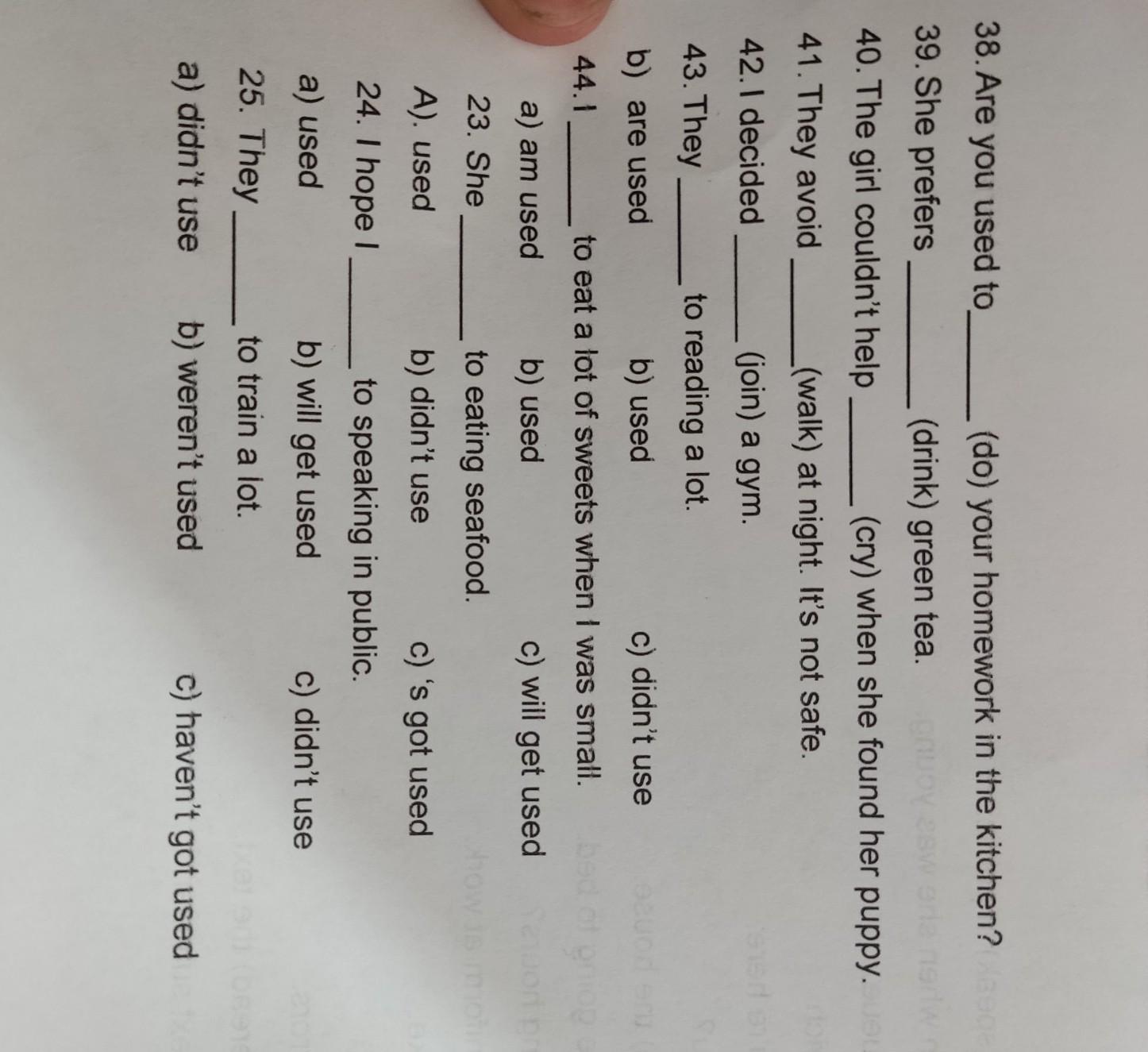 23 She (c) has got used to eating seafood. (Она привыкла (=приобрела привычку) есть морепродукты.)