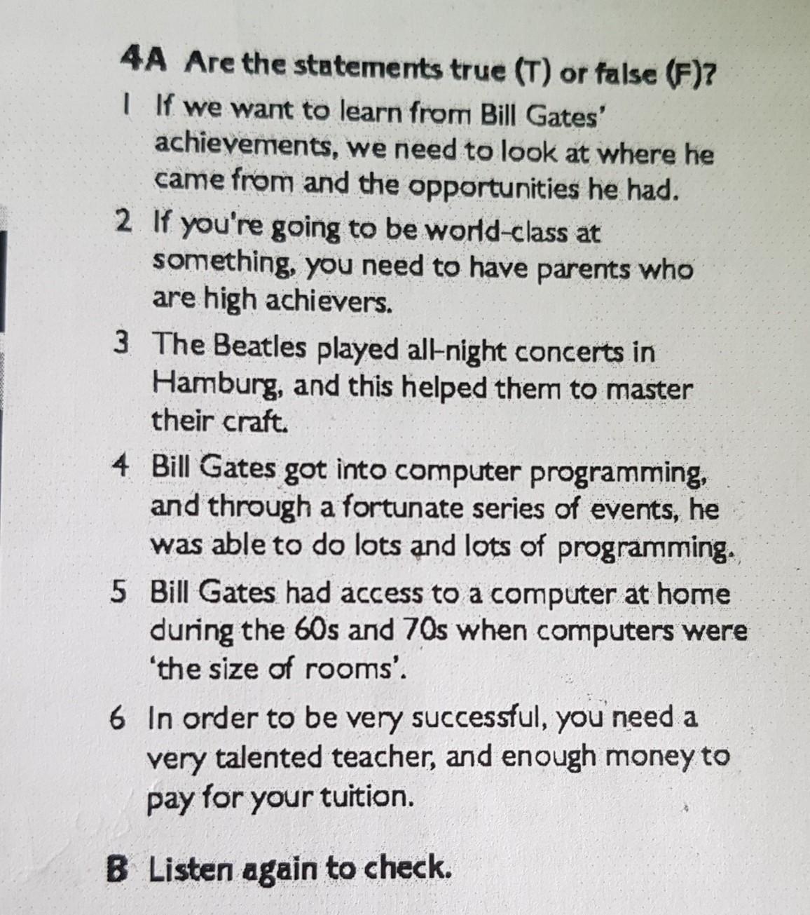 1. If we want to learn from Bill Gates' achievements, we need to look at where he came from and the opportunities he had.