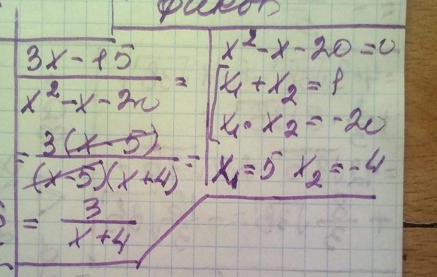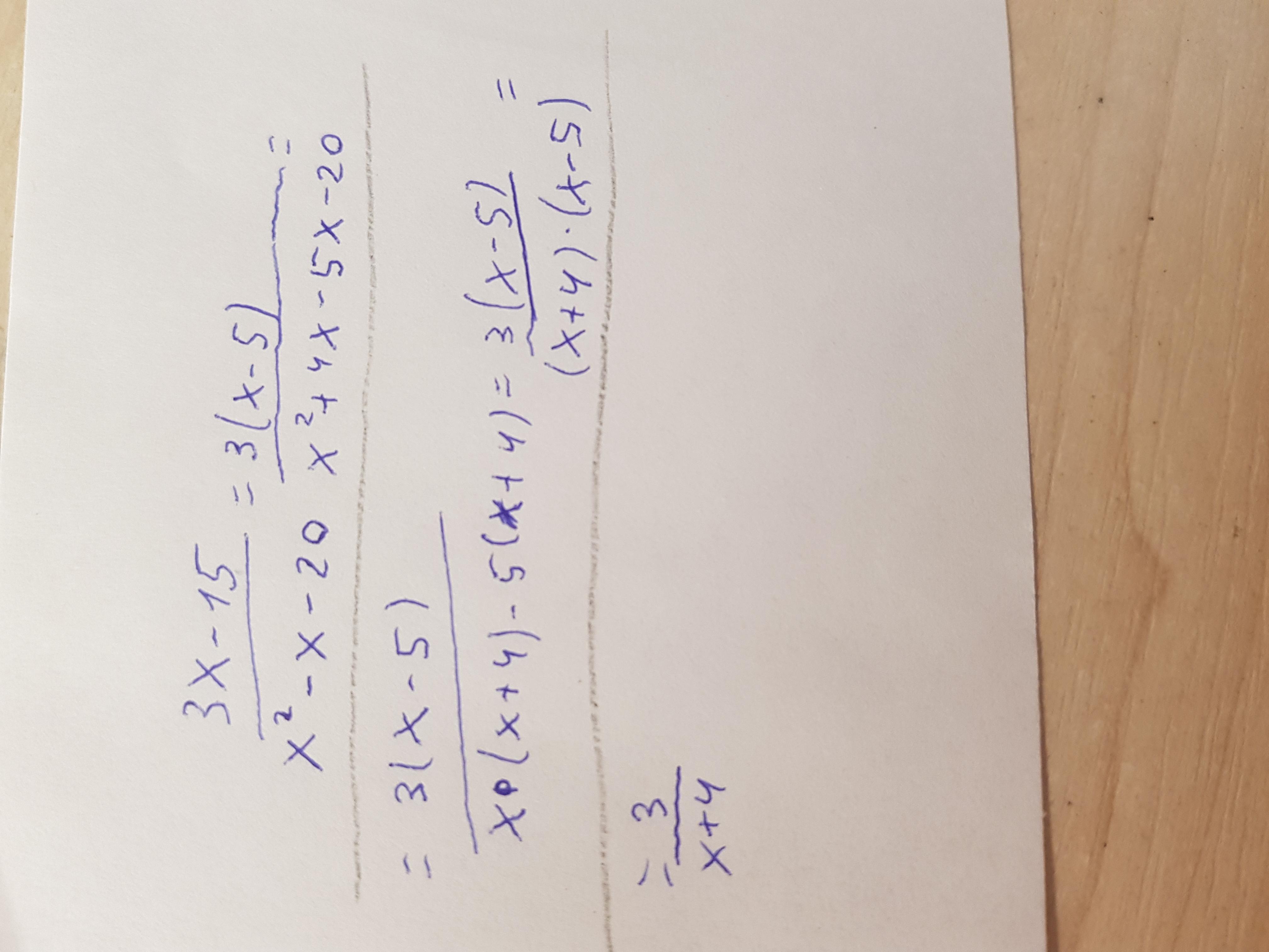 (x-5)(x+4) = 3(x-5)/(x-5)(x+4)=3/x+4