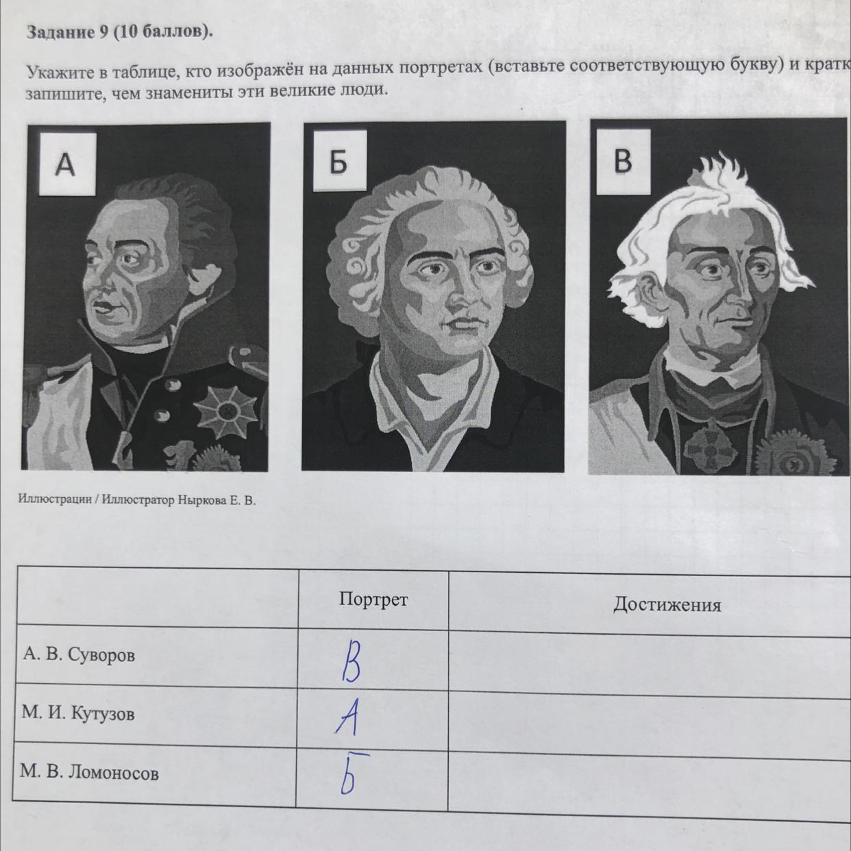 Укажите в таблице, кто изображён на данных портретах (вставьте соответствующую букву) и кратко