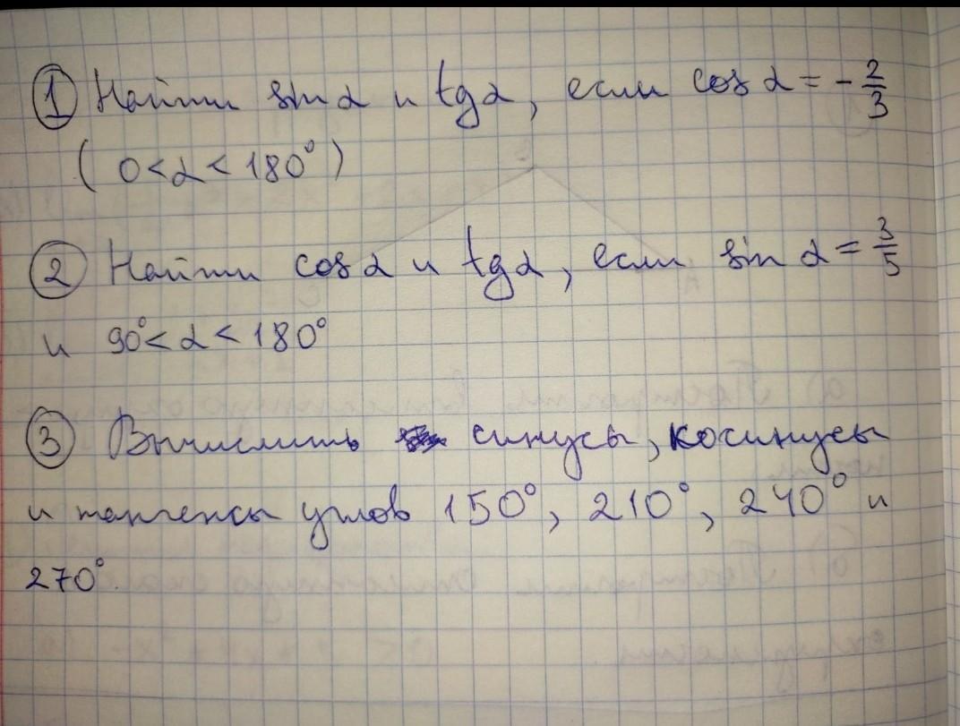 1. т.к. косинус отрицателен, то дан угол второй четверти.