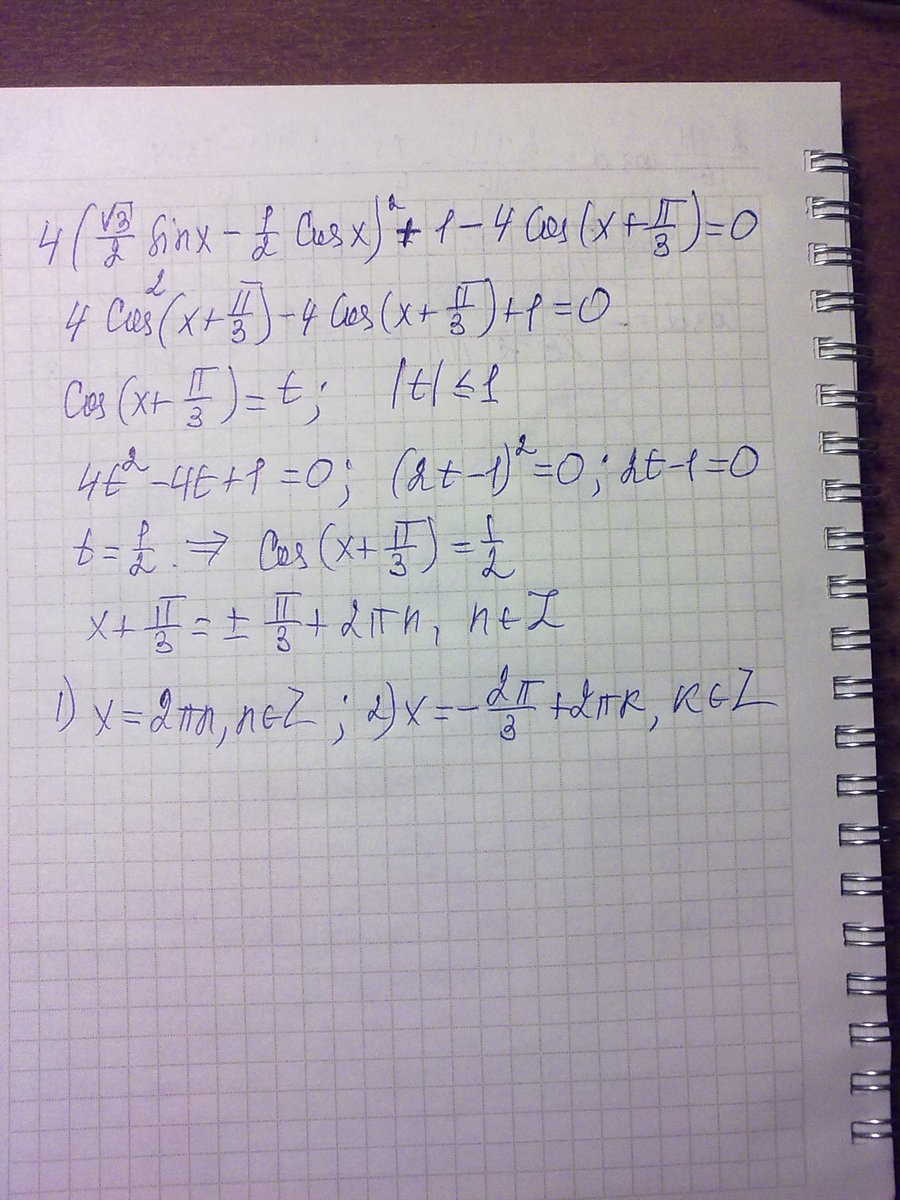 использована формула косинуса суммы двух углов, замена переменной, формула корней простейшего тригонометрического уравнения cos x = a
