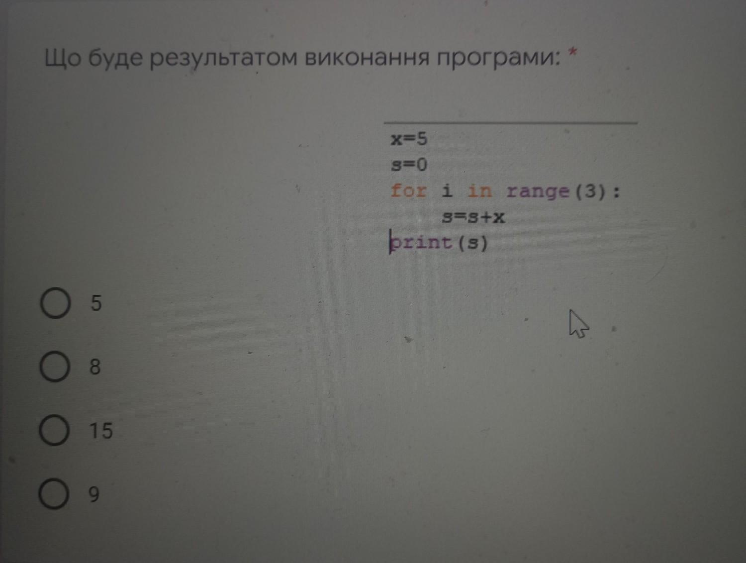 Результатом выполнения кода, представленного на картинке, будет 15.