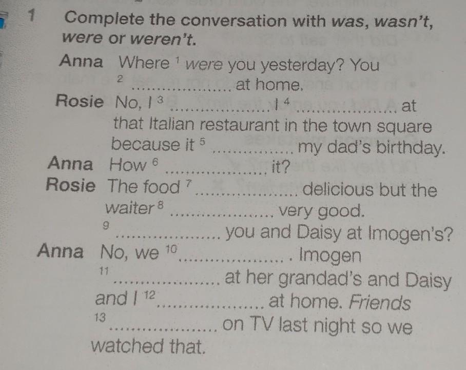 Anna. No, we weren't. Imogen was at her grandad's and daisy and I were at home. Friends were on Tv