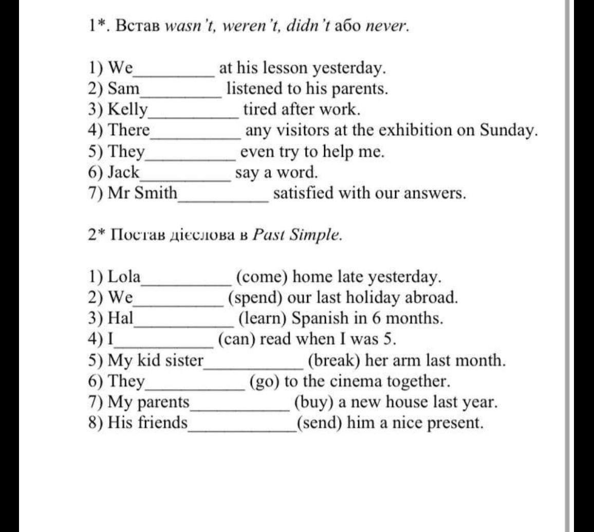 1. came 2.spent, 3.learnt, 4.couldn't, 5.broke, 6.went, 7.bought, 8.sent