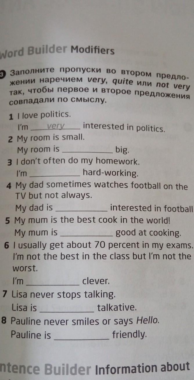 2 is not very big 3 quite 4 very 5 quite 6 not very 7 quite 8 not very