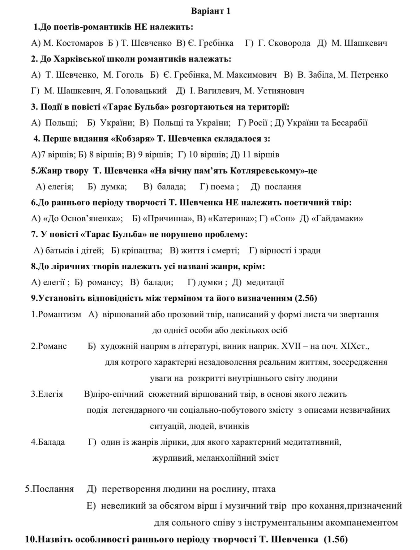 Література українського романтизму. Творчість М.Гоголя, рання творчість Т.Шевченка