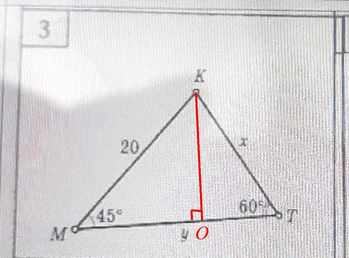 Рассмотрим ΔMKO - это прямоугольный треугольник.