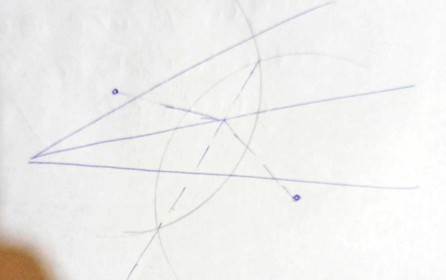 Ответ:Согласно условиям задачи, точка, равноудалённая от двух дорог, должна находиться на биссектрисе угла, образованного пересечением этих дорог. Точка, равноудалённая от двух любых точек, находится на линии пересечения двух окружностей равного диаметра, центрами которых являются заданные точки. Пересечение биссектрисы угла c прямой пересечения двух окружности является точкой нахождение клада, так как соответствует всем условиям задач.