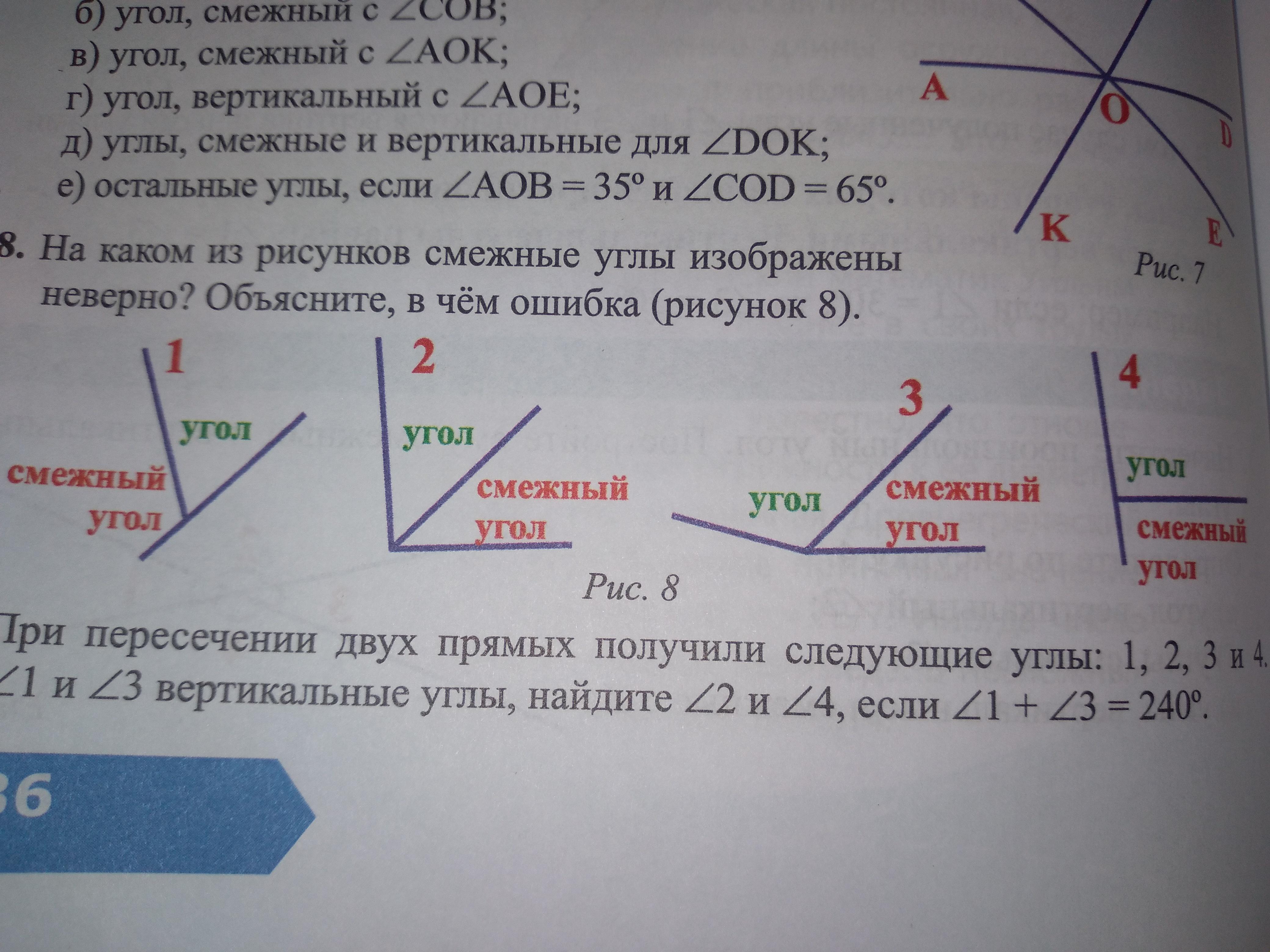 ПОМОГИТЕ ПОЖАЛУЙСТА: НА КАКОМ ИЗ РИСУНКОВ СМЕЖНЫЕ УГЛЫ ИЗОБРАЖЕНЫ НЕВЕРНО? ОБЪЯСНИТЕ, В ЧЁМ ОШИБКА (РИСУНОК 8)