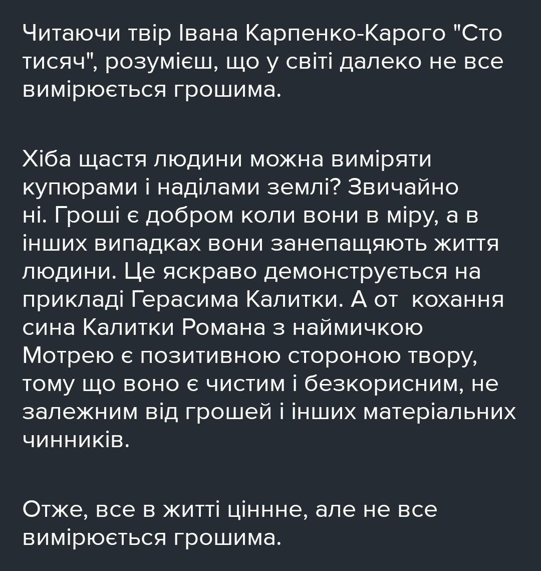 Твір роздум Чи все вжитті вимірюється грошима за трагікомедією "Сто тисяч" Славко Беркута