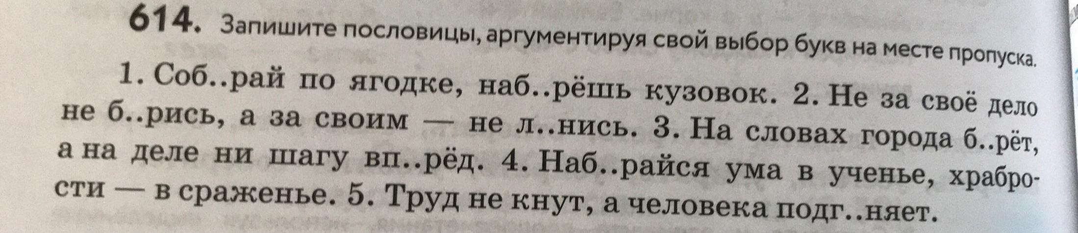 4. Набирайся (корень с чередованием -бир-, пишём гласную "и", потому что после корня есть суффикс -а-) ума в ученье, храбрости - в сраженье.
