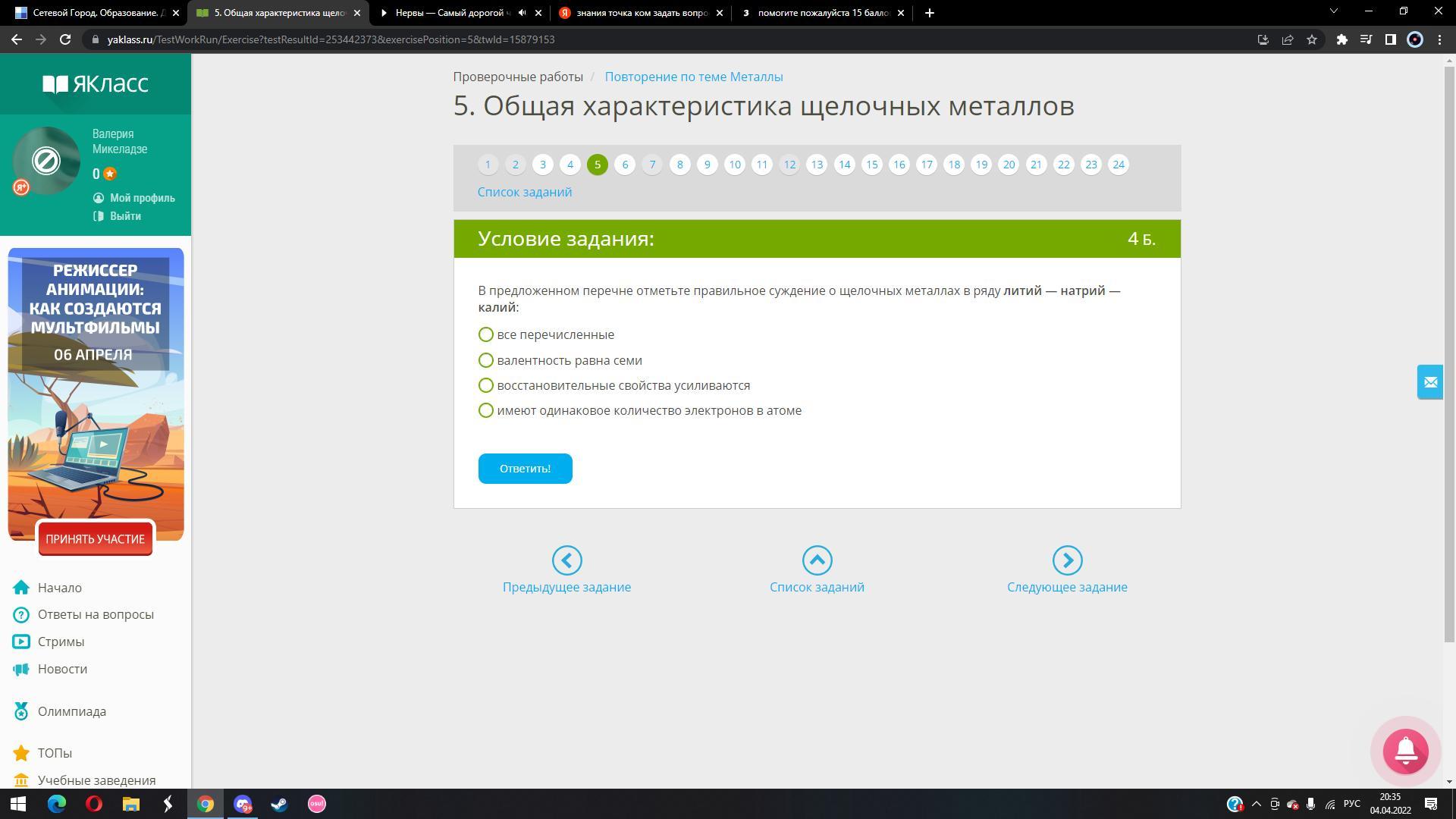 Валентность равна номеру группы I
