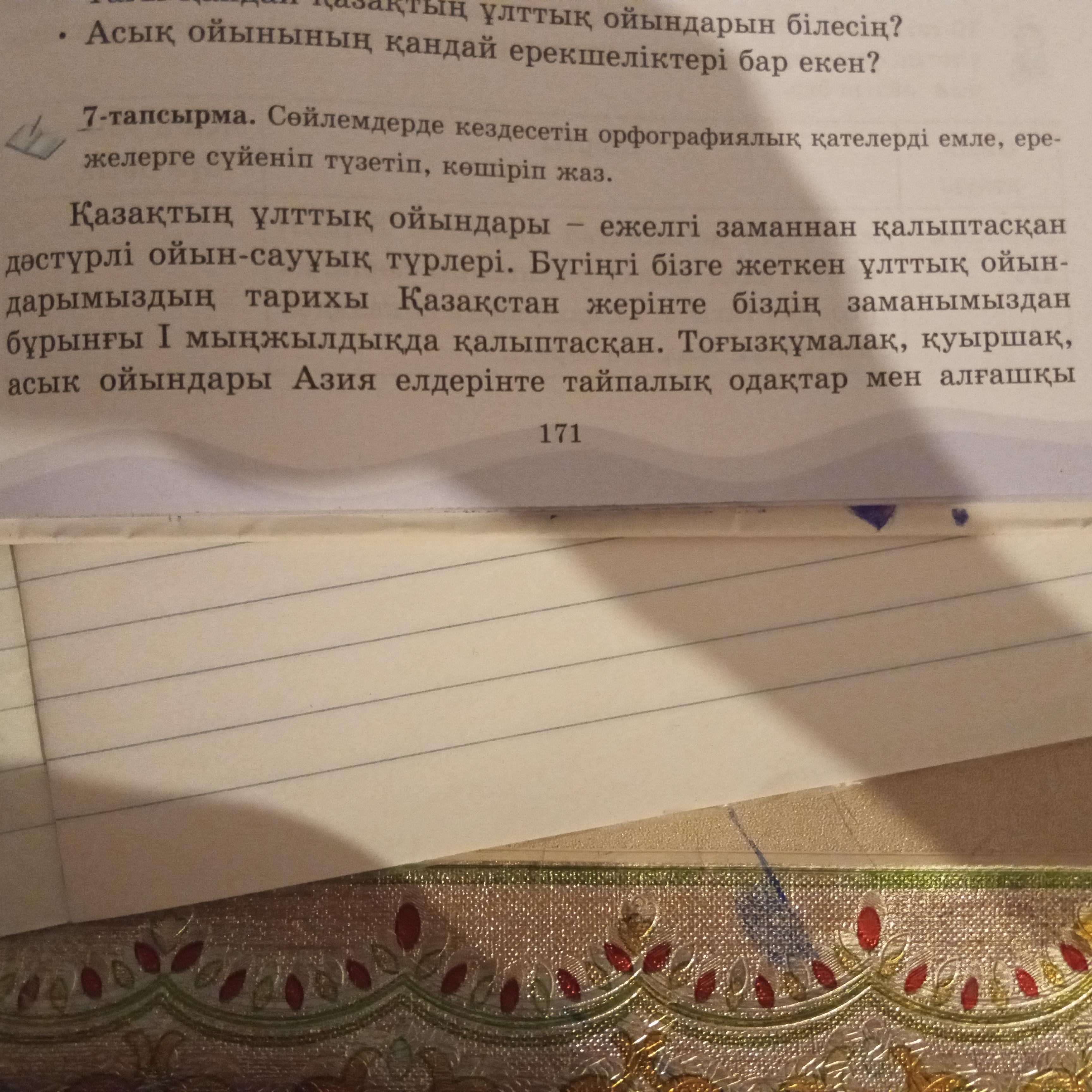 Қазақтың ұлттық ойындары — ежелгі заманнан қалыптасқан дәстүрлі ойын-сауық түрлері. Бүгінгі бізге жеткен ұлттық ойындарымыздың тарихы Қазақстан жерінде біздің заманымыздан бұрынғы Ⅰ мыңжылдықта қалыптасқан. Тоғызқұмалақ, қуыршақ, асық ойындары Азия елдерінде тайпалық одақтар мен алғашқы мемлекеттерде кеңінен тараған. Ұлттық ойындарды меңгеру барысында балалар мен жасөспірімдер әртүрлі жаттығу жасау арқылы денесін шынықтырады, ой-өрісін дамытады. Қазақ ұлты негізінен ұрпақ қамын басты мақсат етіп қойып, балалардың нағыз азамат болып қалыптасуына зор мән берген.