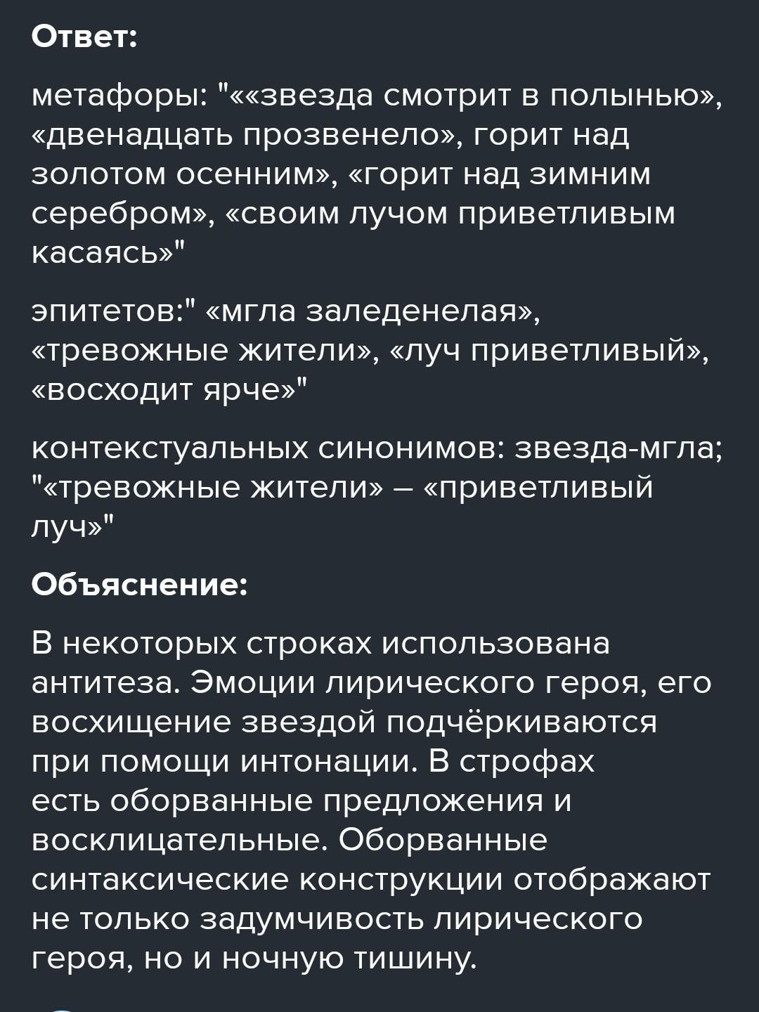 контекстуальных синонимов: звезда-мгла; "«тревожные жители» – «приветливый луч»"