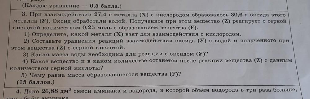 Все задание построено вокруг закона Лавуазье : масса веществ, вступающих в химическую реакцию, равна массе веществ, образующихся в результате реакции.