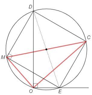 Около прямоугольника CDME можно описать окружность, диагонали CM и DE являются ее диаметрами. ∠DOE - прямой, следовательно точка O лежит на окружности с диаметром DE. Тогда ∠COM - прямой, так как опирается на диаметр CM.