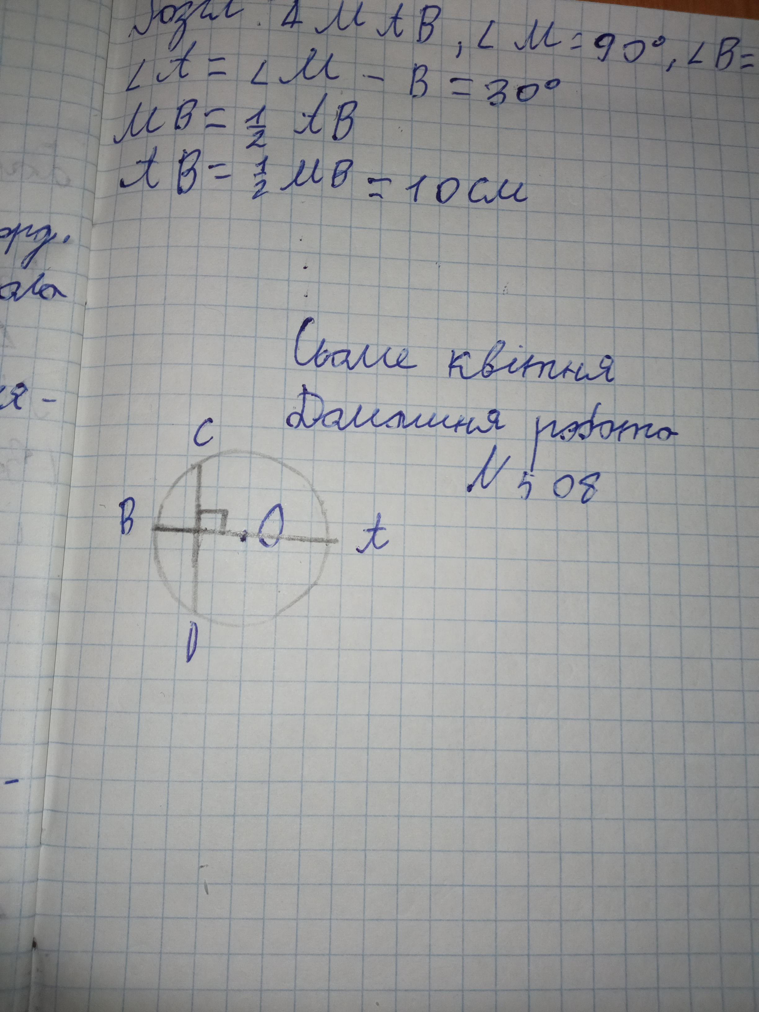 Накресліть коло із центром О, проведіть хорду CD. Користуючись лінійкою зі шкалою, проведіть діаметр, перпендикулярний до хорди CD.