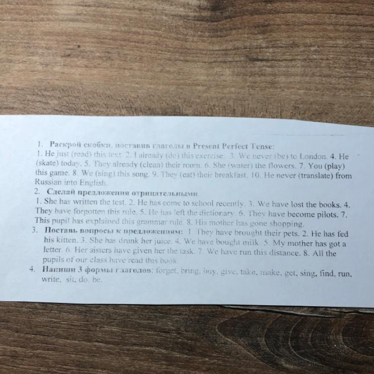 Have they brought their pets? 2. Has he fed his kitten? 3. Has she drunk her juice? 4. Have we bought milk ? 5. Has my mother got a letter? 6. Have her sister given her the task? 7. Have we run his distance? 8. Have all the pupils of our class read this book?