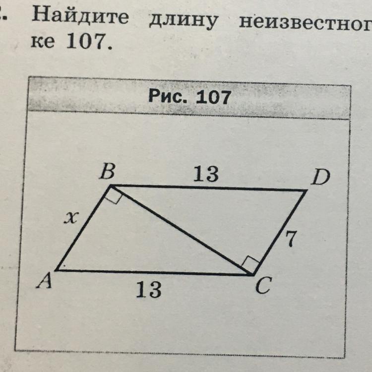 найдите длину неизвестного отрезка х на рисунке 107.