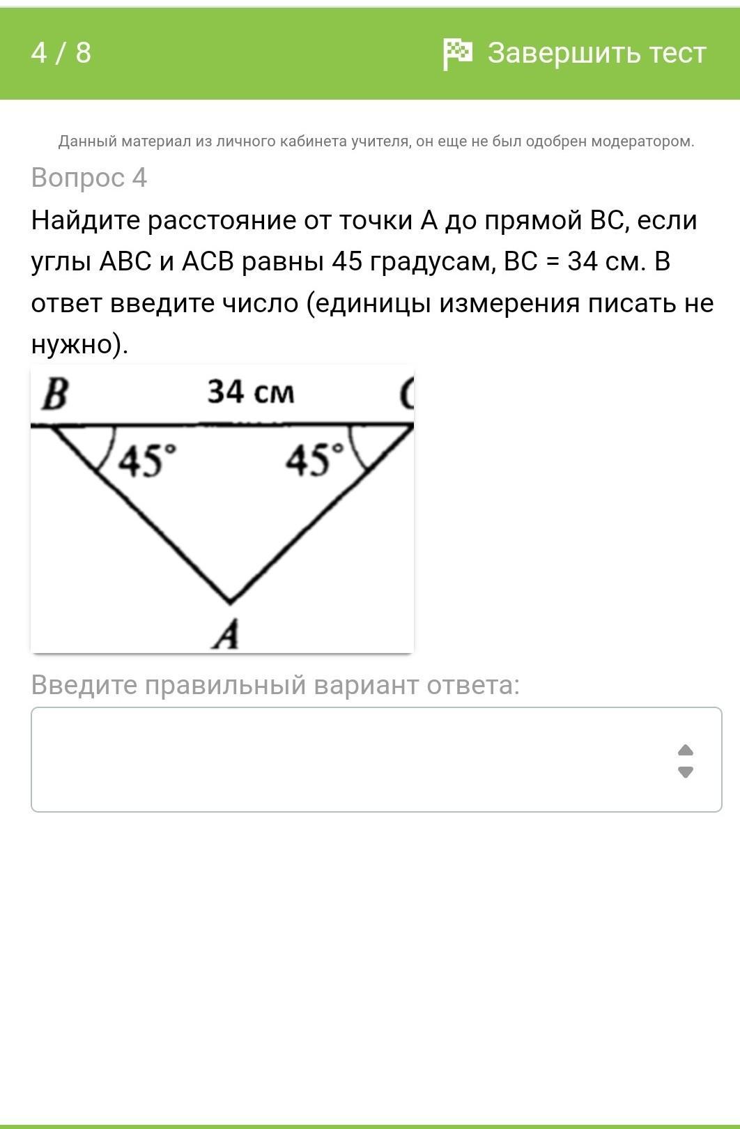 расстояние до ВС то высота и медиана (так как треугольник равнобедренный)