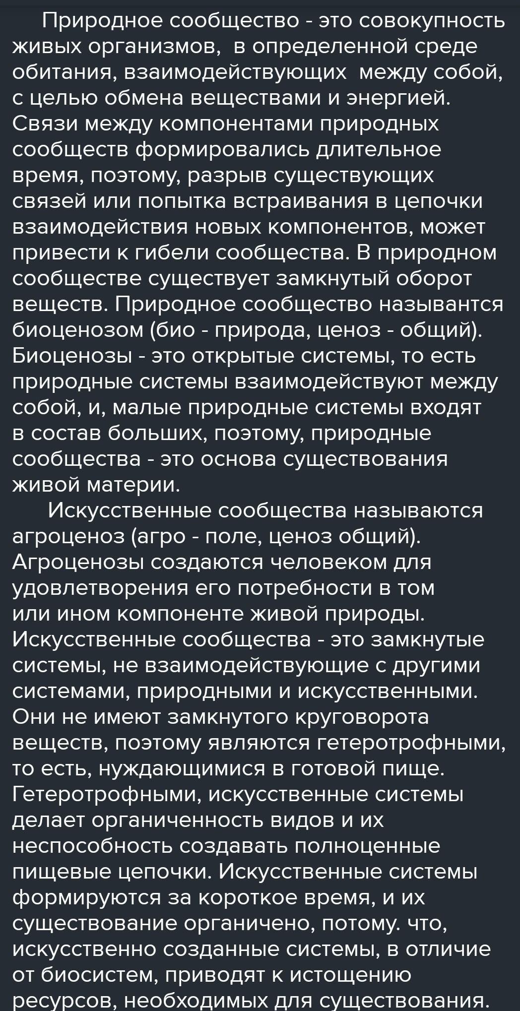 • искусственное сообщество - неустойчивая система, тогда как природное сообщество способно существовать достаточно длительное время.