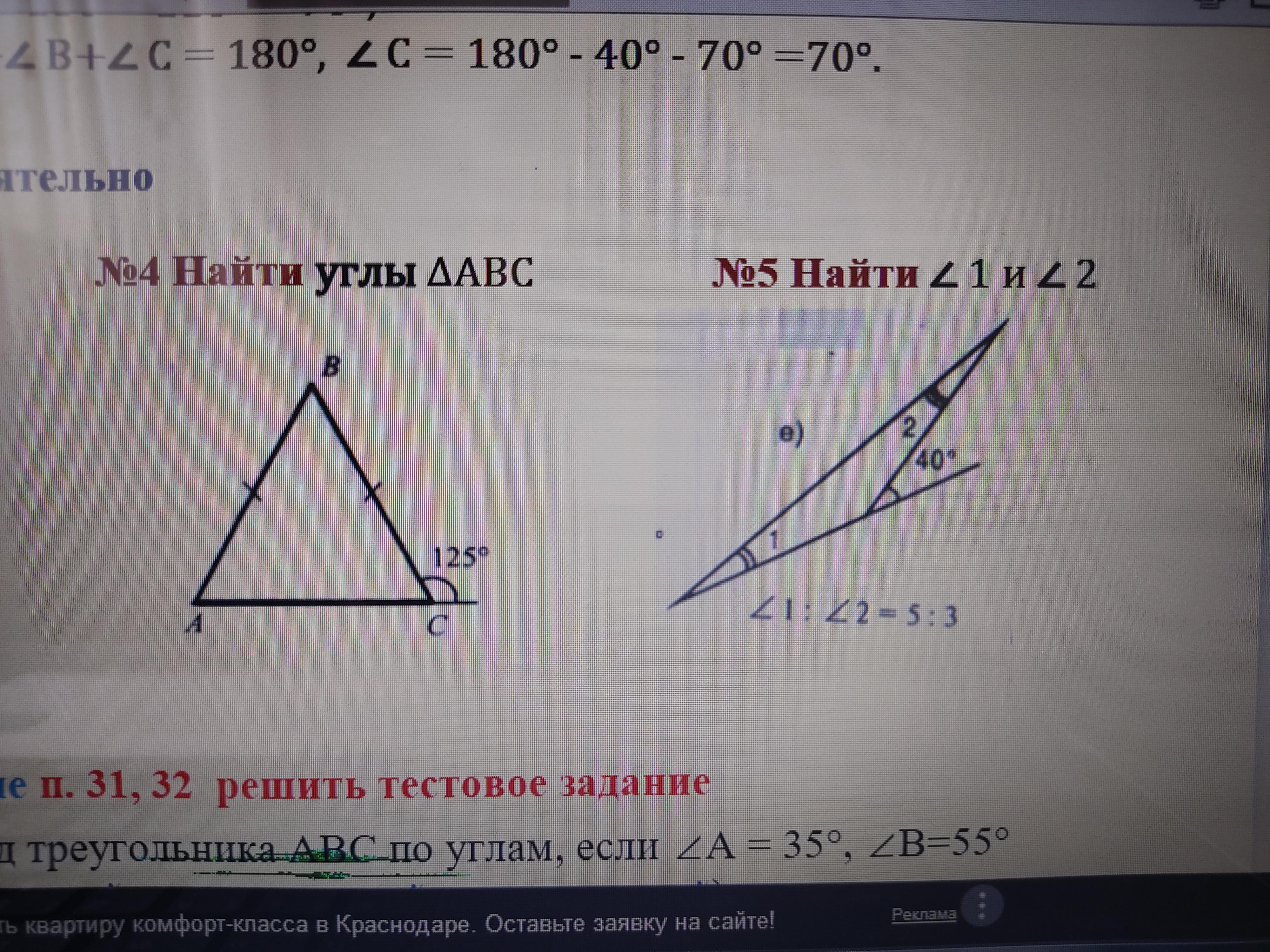 3. 55+55=110° ; 180-110=70° (Угол В)