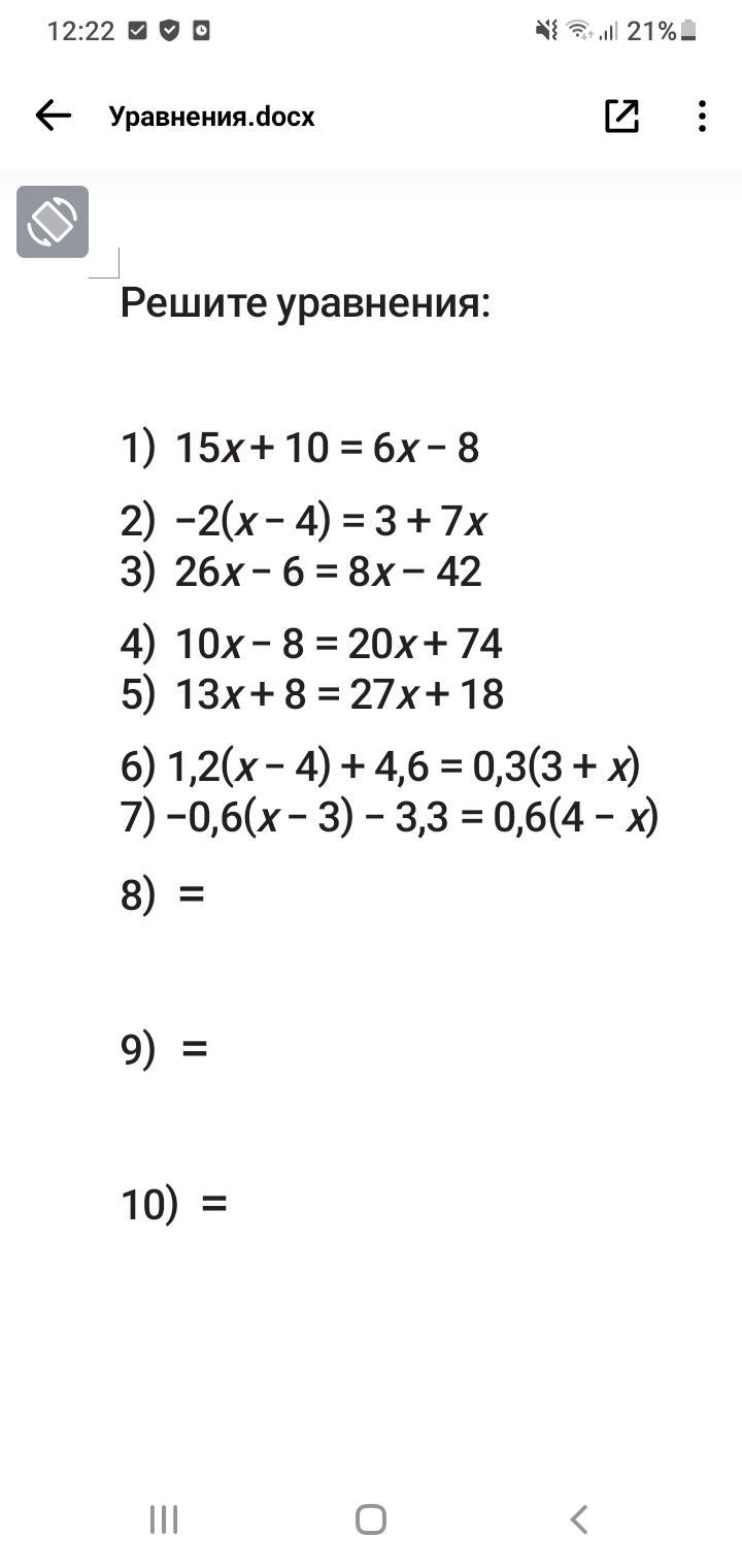 6) 1,2(x - 4) + 4,6 = 0,3(3 + x)