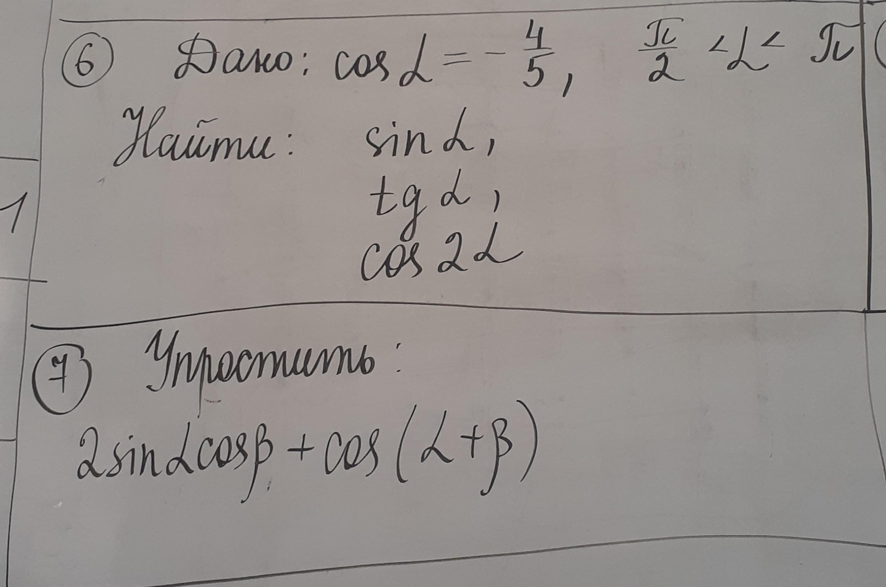 sin(a)=√(1-cos²(a))=√(1-16/25)=3/5 (sin(a) положителен так как π/2<a<π)
