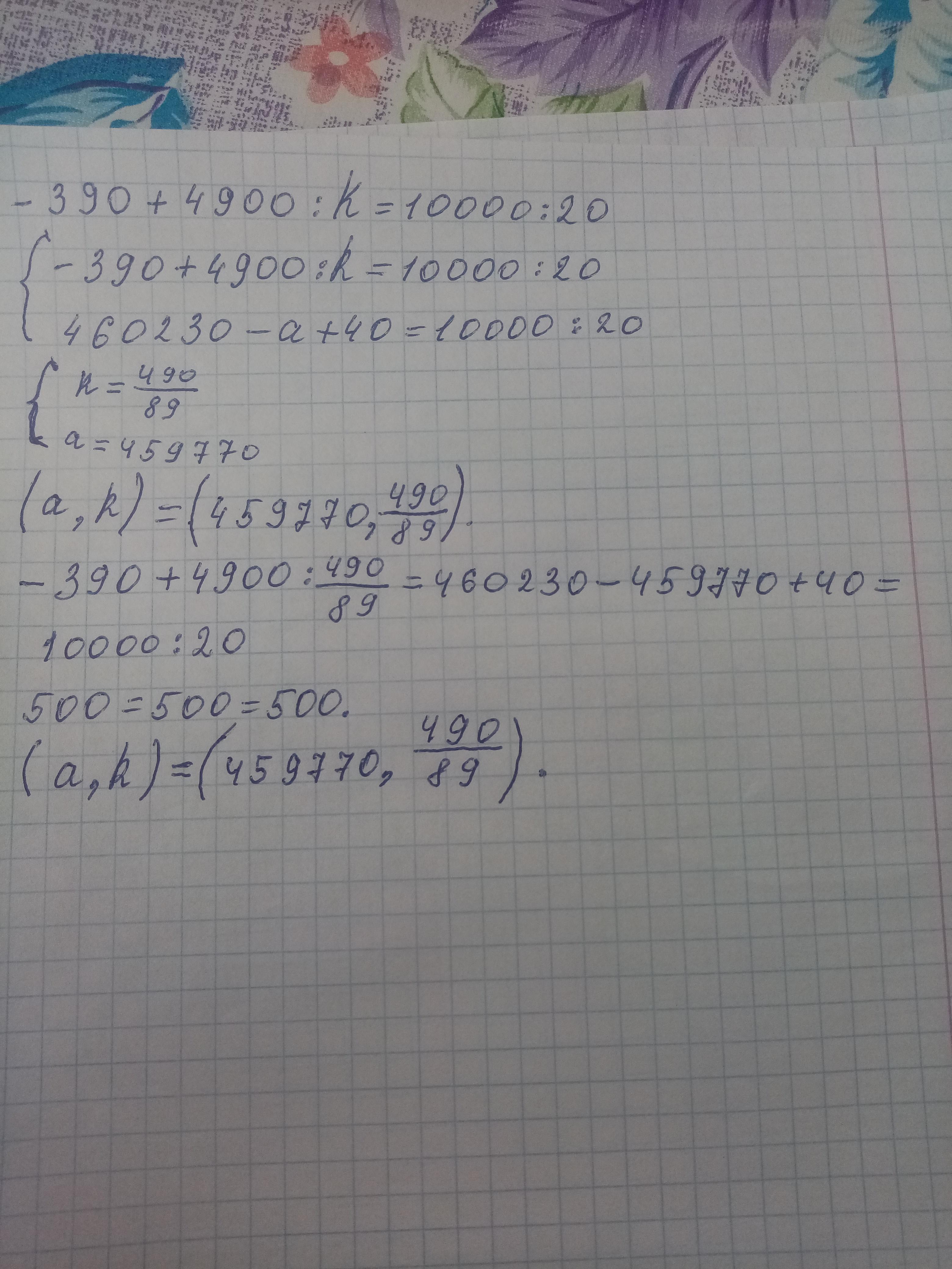 - 390 + 4 900 :k= 460 230 - a + 40 = 10 000:20 =