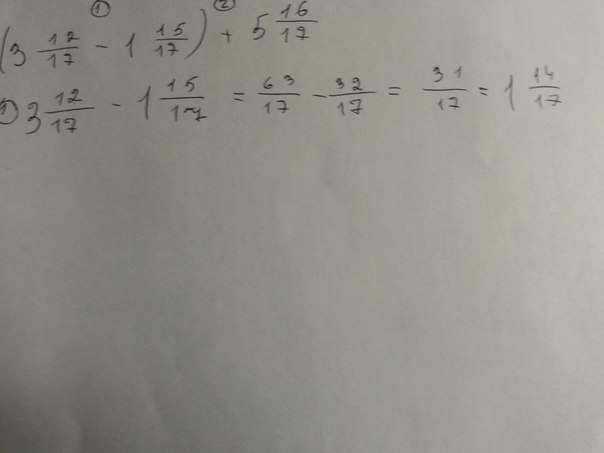 Выполните действие:( 3ц12/17 - 1ц15/17)+ 5ц16/17? /- это дроби