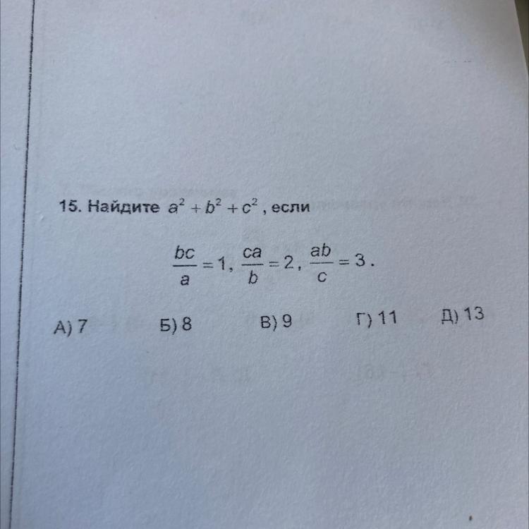 Пошаговое объяснение:bc/a=1,ca/b=2,ab/c=3.