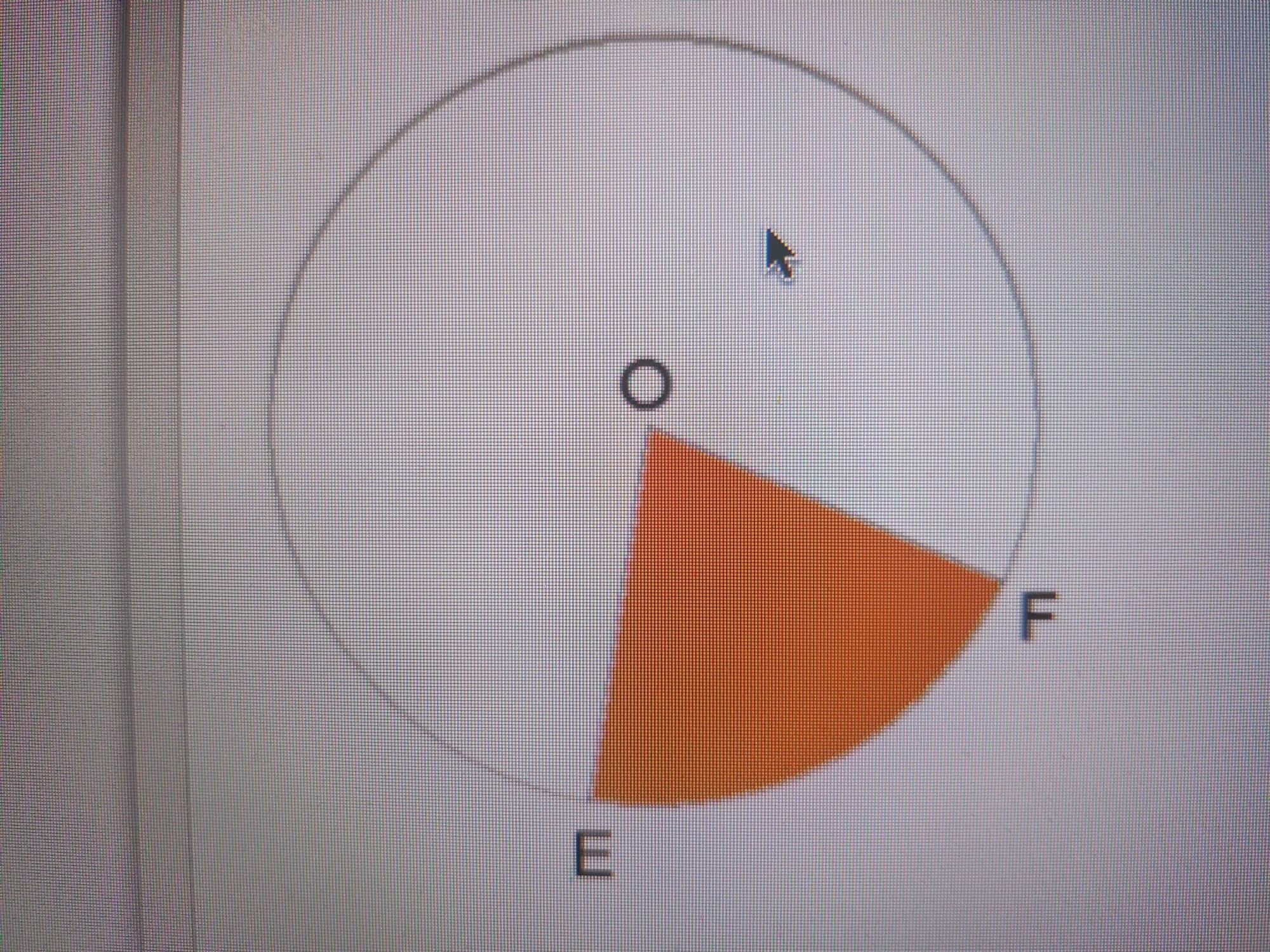 Вычисли площадь закрашенного сектора, если радиус круга равен 10 см и центральный угол EOF = 18°