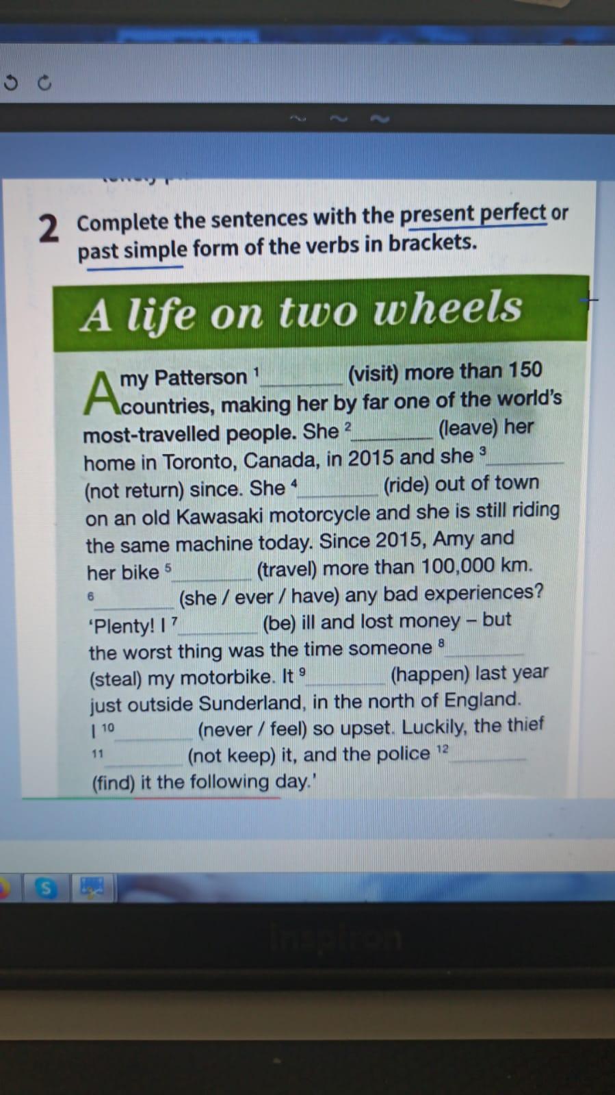 Ответ:1. Visited2. Left3. Hasn’t returned 4. Rode5. Traveled6. Has she ever had7. Had been8. Stole9.happened10. Never felt11. Hadn’t kept it12. Found