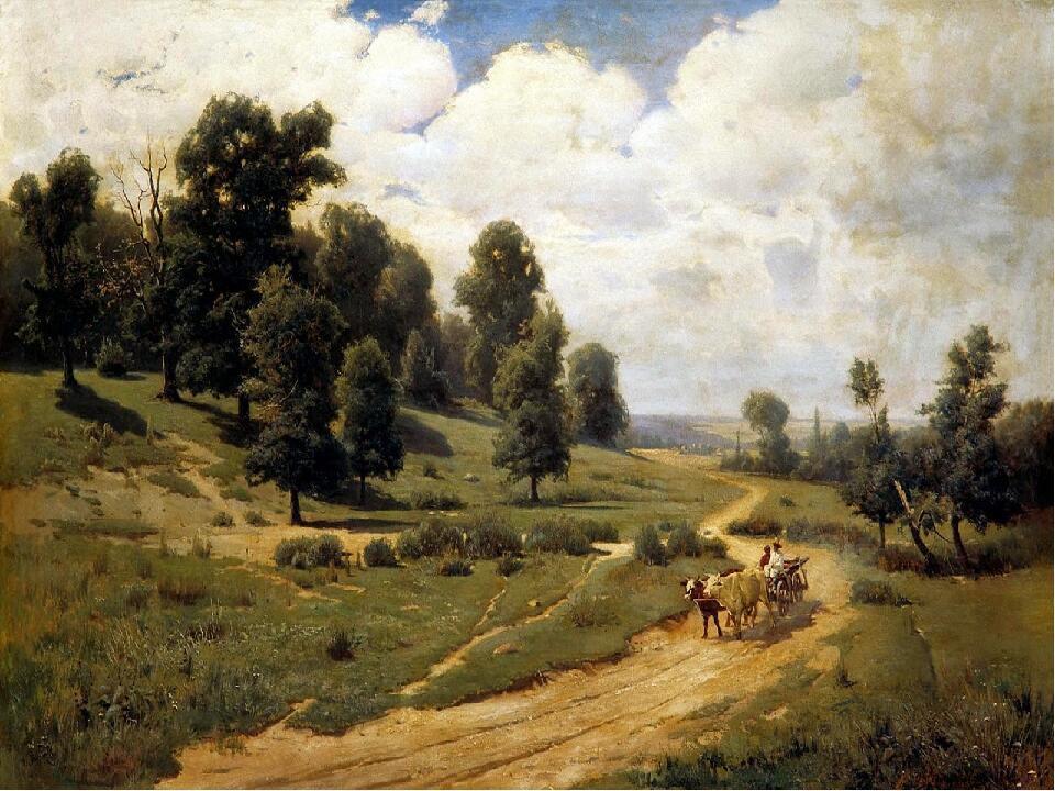 Одного разу два чоловіка прямували по дорозі яка була біля лісу.погода була теплою та яскравою.один з цих чоловіків диввся на ліс та слідкував за волами,а другий дивися з відки вони їхали.