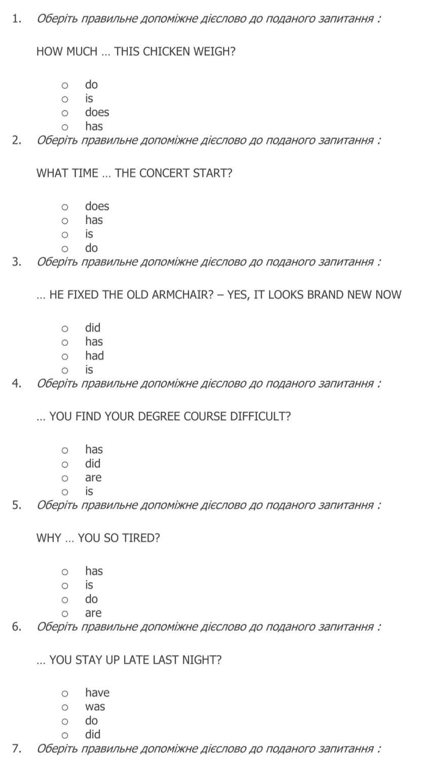 Глагольная форма «weigh» требует вспомогательного глагола «to do». Поскольку «chicken» — единственное число, выбираем «does».