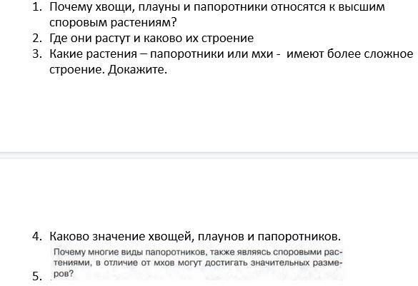1. хвощи, плауны и папоротники относятся к высшим растениям, так как имеют дифференцированные ткани и органы. а к споровым их относят из-за размножения спорами.